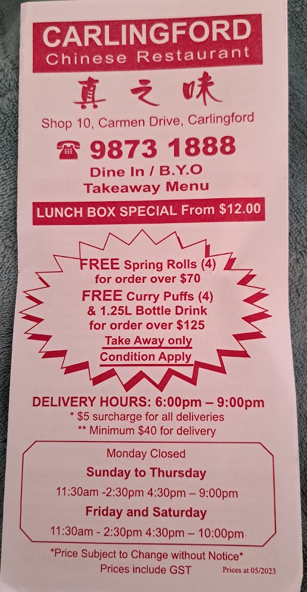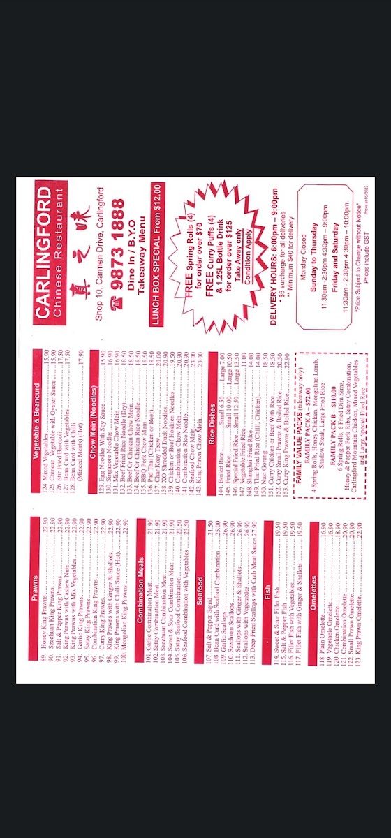 Whether you're here for a casual meal or takeaway, Carlingford Chinese Restaurant promises a delicious, satisfying dining experience that keeps patrons coming back for more!